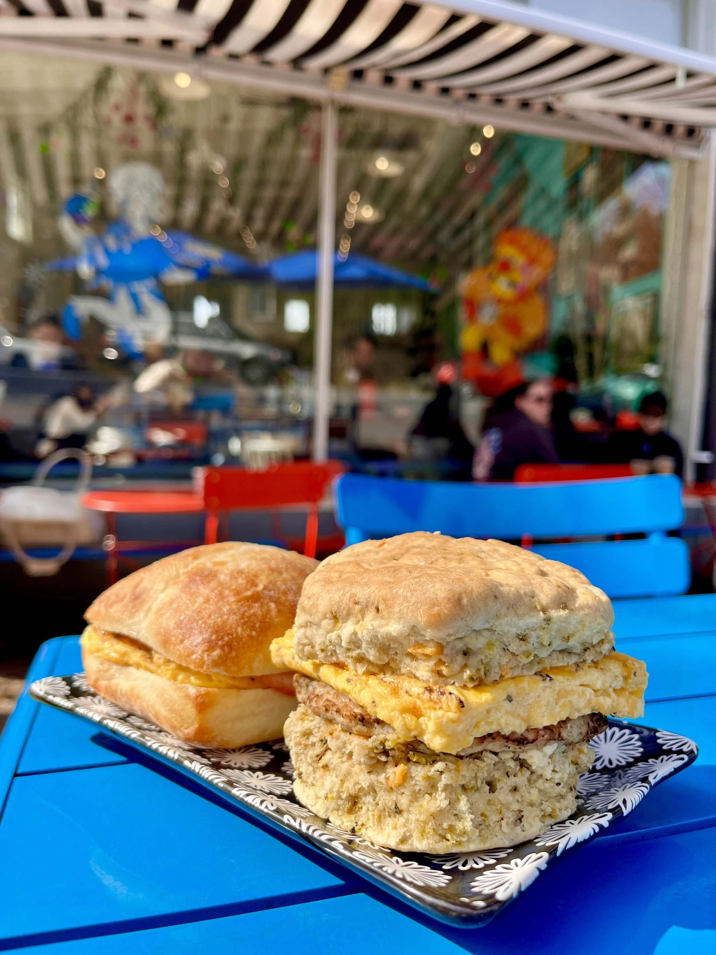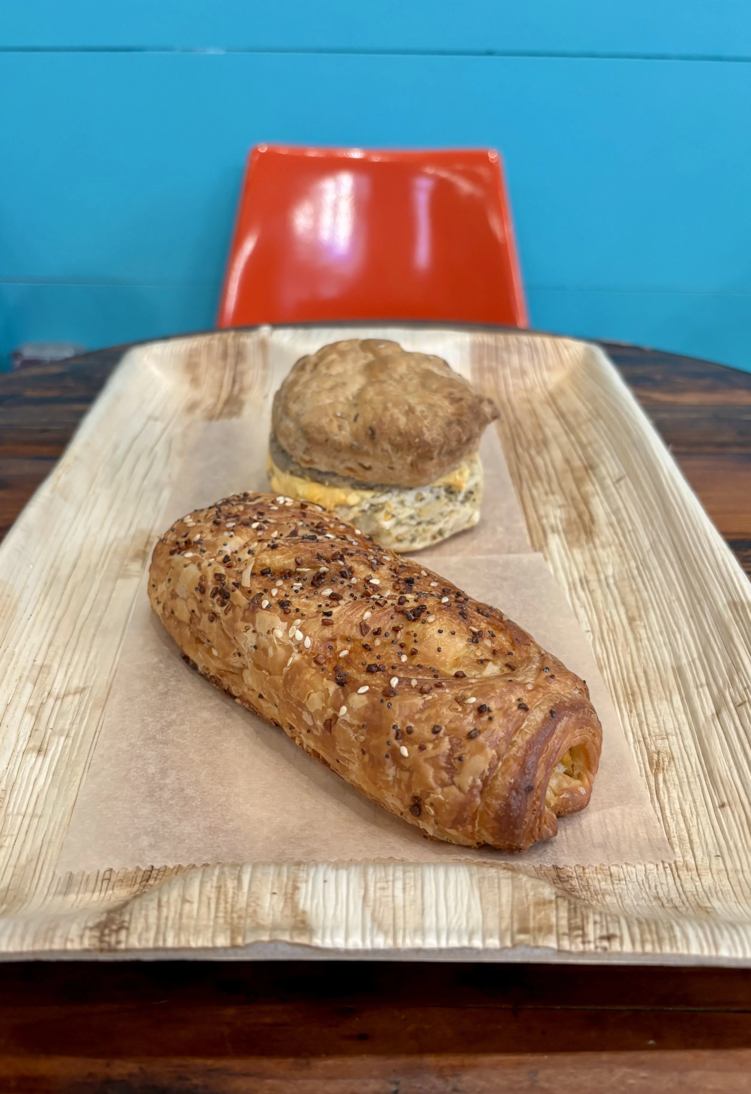 We offer a variety of breakfast and lunch sandwiches daily, with vegan and gluten-free options.